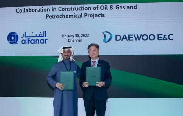 وتم توقيع الاتفاقية التي تبلغ قيمتها 1.5 مليون دولار أمريكي بحضور المهندس عامر العجمي، النائب التنفيذي في الفنار، وسونج مين يانج، النائب الأول للرئيس في شركة “دايو” للهندسة والإنشاءات، بهدف التعاون المشترك في بناء مشاريع النفط والغاز والبتروكيماويات.