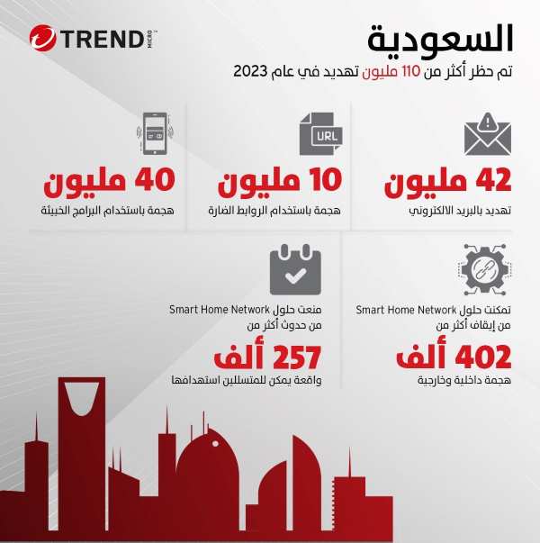 وفي المملكة العربية السعودية، لعبت حلول “تريند مايكرو” المتطورة دورًا محوريًا في تعزيز منظومة الأمن السيبراني، حيث نجحت في التصدي لأكثر من 110 مليون تهديد سيبراني متنوع خلال العام الماضي، كان من بينها حظر أكثر من 42 مليون تهديد عبر البريد الإلكتروني، والحيلولة دون وقوع أكثر من 10 مليون هجوم عبر الروابط الضارة، إلى جانب تحديد وإيقاف أكثر من 40 مليون هجمة باستخدام البرامج الخبيثة، مما يؤكد احتياج الشركات والمؤسسات العاملة في المملكة إلى اتباع نهجٍ استباقيٍ يدعم استقرارها ويوفر لها الحماية اللازمة لأصولها الرقمية من خلال كشف التهديدات السيبرانية والتصدي لها بأعلى درجات الفعّالية.